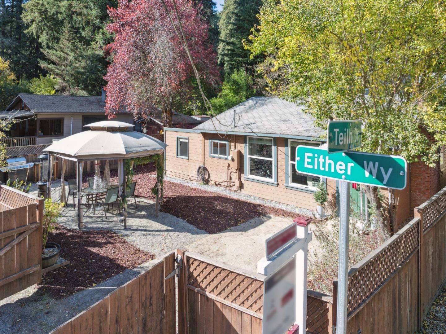 Charming mountain home located on a flat and sunny lot in desirable Riverside Grove neighborhood of Boulder Creek offering easy access to Highway 9 without the noise. This efficient 846 sq. ft. residence offers a comfortable living experience with 2-bedrooms and 1-full bathroom single level floor plan with dual pane windows, fresh interior paint, remodeled bathroom with stall shower, and updated light fixtures. The unique split kitchen is setup with preparation and storage in mind with a breakfast nook in the back. From the open kitchen the spacious living area boasts vaulted ceilings, adding to the sense of space and openness. Flooring consists of carpet and LVP and linoleum, providing a practical and easy-to-maintain surface. For your comfort, the home is equipped with a ceiling fan for cooling and both electric and wood stove heating options. Additionally, the home offers a sun room fitted with corrugate roof and washer/ dryer. Outside, the sunny yard is ideal for cultivating a vegetable or fruit garden, with fencing to keep deer out and your pets safe. Enjoy parking behind the gate and a gazebo for outdoor gatherings. Finally, the Boulder Creek starter home you have been looking for with everything you need at a great price, don't miss your opportunity to make it your own.